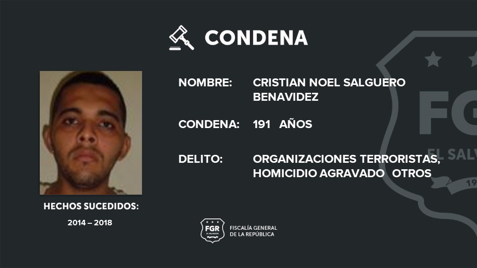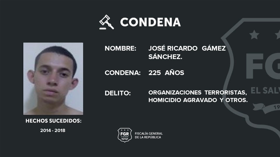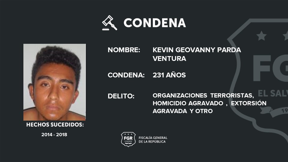 Mientras que Kevin Geovanny Parda Ventura, alias vinke, fue condenado a 231 años de cárcel por organizaciones terroristas, 4 homicidios agravados, 2 extorsiones agravadas y actos preparatorios, proposición, conspiración y asociaciones delictivas en el delito de tráfico ilícito de droga con agravación especial; a 225 fue condenado José Ricardo Gámez Sánchez, alias cicatriz , por organizaciones terroristas, 5 homicidios agravados y actos preparatorios, proposición, conspiración y asociaciones delictivas en el delito de tráfico ilícito de droga con agravación especial.
