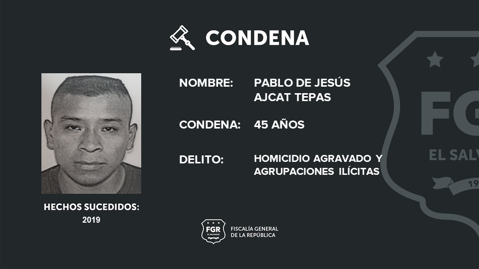 Pablo de Jesús Ajcat Tepas recibió una pena de 45 años en prisión por dos homicidios agravados en perjuicio de dos víctimas y el delito de agrupaciones ilícitas. Saúl Ernesto García García, alias tortuga, fue sentenciado a 30 años de cárcel por el delito de homicidio agravado por el asesinato de una persona y por agrupaciones ilícitas.