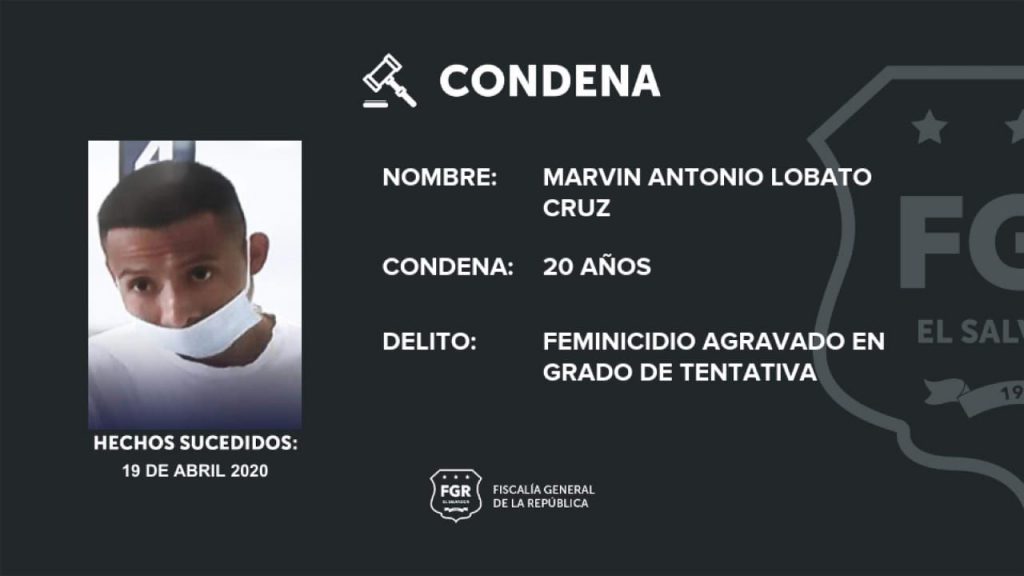 Zaragoza, La Libertad. La Fiscalía General de la República (FGR) hizo justicia a favor de una mujer que fue víctima de feminicidio tentado por parte de su expareja, Marvín Antonio Lobato Cruz; al imputado se le condenó a 20 años de prisión