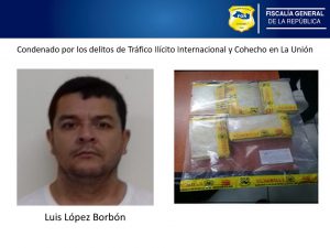 La Unidad Antinarcotráfico de San Miguel dio a conocer que se trata del caso del imputado Luis López Borbón, quien fue llevado a la vista pública en el Juzgado de Sentencia de La Unión, ante el cual se le atribuyeron los delitos de Tráfico Ilícito Internacional y Cohecho (soborno).
