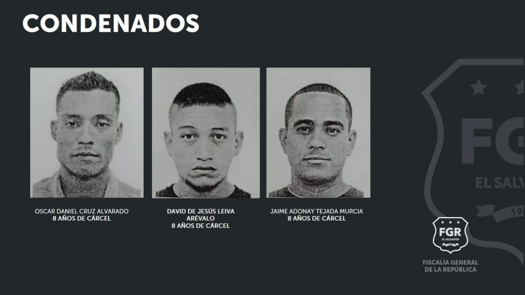 En este caso los imputados son: Jaime Adonay Tejada Murcia, alias “Chumico”; Óscar Daniel Cruz Alvarado, alias “Calaco” y David de Jesús Leiva Arévalo, alias “Cusa”, todos miembros de la “Mara Salvatrucha”.
