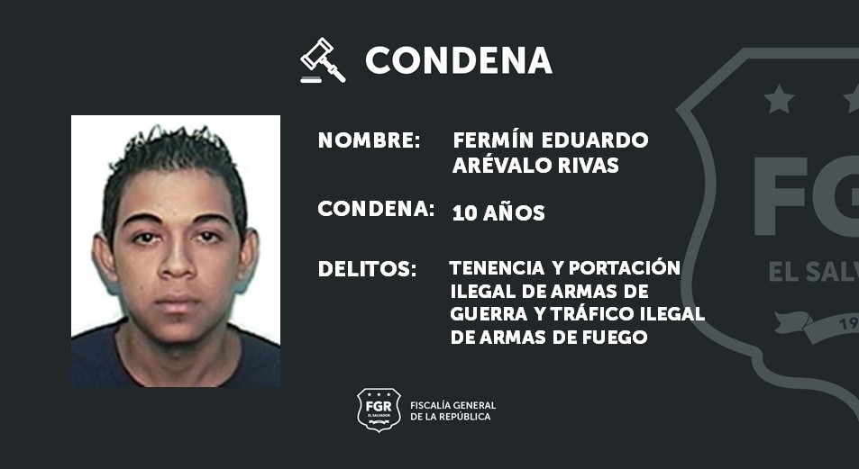 San Salvador. Una condena de 10 años en una cárcel deberá cumplir Fermín Eduardo Arévalo Rivas, quien fue declarado culpable por transportar municiones y una granada de manera ilegal, según confirmó la Fiscalía General de la República.