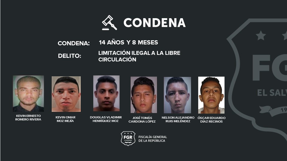 San Salvador. En una primera condena de prisión, seis delincuentes deberán permanecer encarcelados 14 años y 8 meses, después que la Fiscalía General de la República (FGR) demostró que son culpables por haber obligado a una familia a que abandonara su vivienda en Tonacatepeque, al norte de San Salvador.