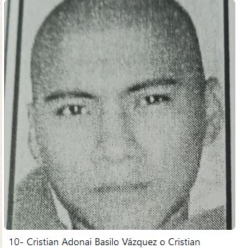 1- Cristian Adonay Basilo Vásquez o Cristian Alexander Ramírez, alias “pollo salado”, recibió pena de 49 años con 6 meses de prisión. Por el delito de Proposición para el delito de Homicidio en perjuicio de clave “Venecia”, condena a 8 años de prisión. Por el delito de Proposición para el delito de Homicidio en perjuicio de clave “Suiza”, condena a 8 años de prisión. Por el delito de Proposición para el delito de Homicidio en perjuicio de “Mincho”, condena a 8 años de prisión; en perjuicio de “Dengue”, condena a 8 años de prisión; y en perjuicio de “Puro”, condena a 8 años de prisión. Por el delito de Agrupaciones Ilícitas, condena a 9 años de prisión y por delito de Proposición para el delito de Tráfico ilícito de droga seis meses de prisión.