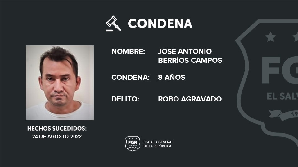 San Salvador. José Antonio Berríos Campos y de Hugo Ernesto Romagoza Urvana fueron sentenciados a 8 y 9 años e cárcel, respectivamente, por haber cometido el delito de robo agravado; la Físcalía presentó en el juicio las pruebas suficientes que evidenciaron que los imputados se dedicaban a asaltar en Nejapa, San Salvador y luego anunciaban la venta de la mercancía robada en redes sociales.