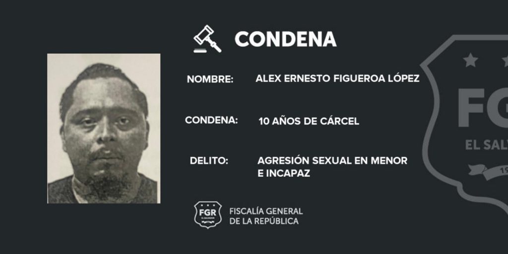 La segunda condena fue de 16 años de cárcel para Guillermo Rodrigo Hidalgo Tovar, por el delito de Agresión en Menor o Incapaz Agravada Continuada. Quedó demostrado que el imputado realizó tocamientos indebidos en perjuicio de una niña de 9 años. Los hechos sucedieron durante el año 2021, en una zona residencial en Ilopango; la situación quedó comprobada ante el Tribunal Primero de Sentencia de San Salvador.