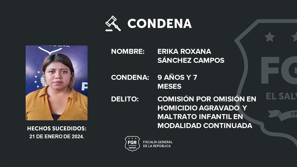 En el proceso también se enjuició a Erika Roxana Sánchez Campos, quien fue sentenciada a 9 años y siete meses de prisión por omisión del homicidio agravado de la niña y maltrato infantil continuado contra de las otras tres víctimas.