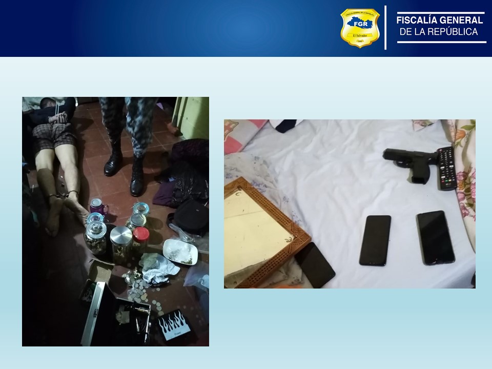 Durante el operativo se realizaron 28 registros con prevención de allanamiento en varios sectores de los municipios de Mejicanos y Ayutuxtepeque, donde se lograron incautar un arma de fuego tipo pistola y media libra de marihuana.