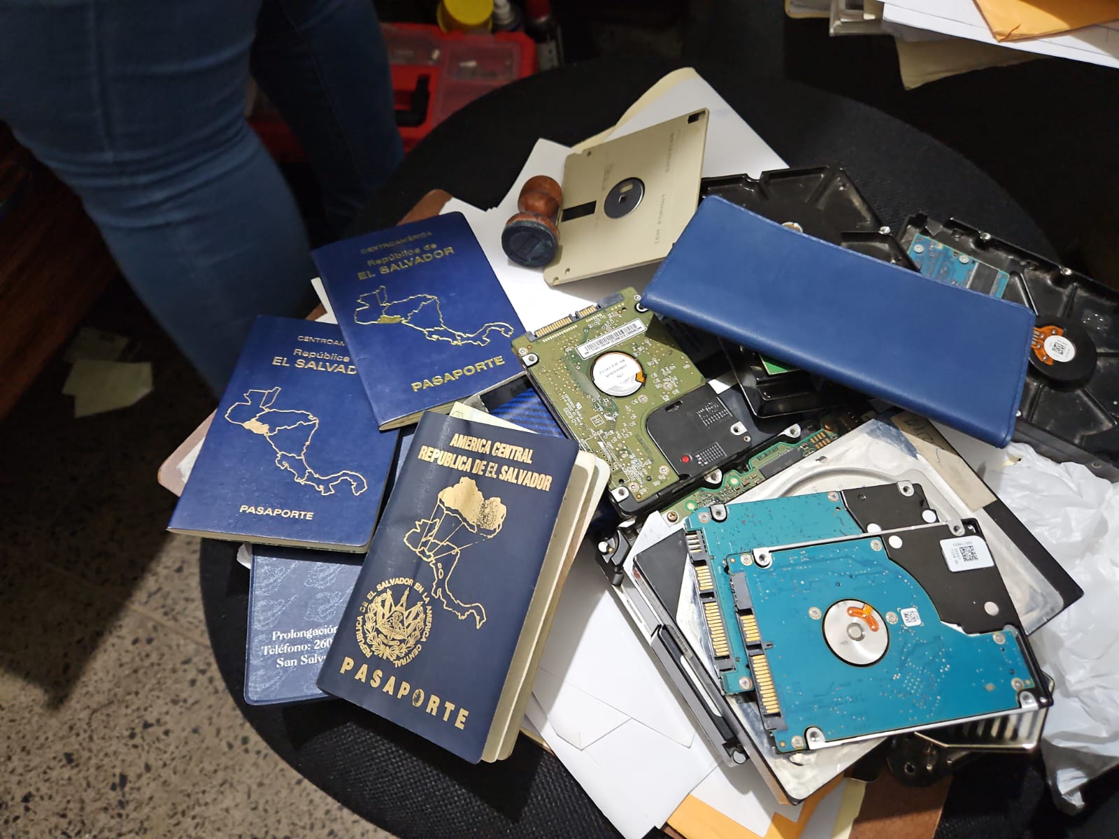 Durante los registros se incautó importante documentación relacionada con los casos investigados como pasaportes, páginas en blanco con firma y sello de los imputados y otros notarios, así como dispositivos móviles con información precisa de los procesos.