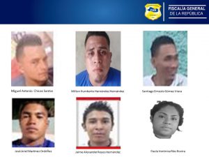 Los capturados han sido identificados como: Miguel Antonio Chicas Santos, José Ariel Martínez Ordóñez, Santiago Ernesto Gómez Viera, Jaime Alexander Reyes Hernández, Milton Humberto Hernández Hernández, Josué Manuel Corpeño Guardado, Paula Verónica Ríos Rovira y dos menores de edad.