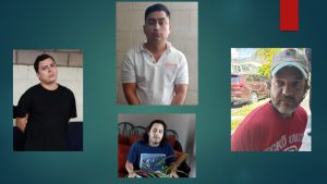 Los registros con prevención de allanamiento que aún se realizan simultáneamente, se están llevando a cabo sobre la calle Sisimiles de la colonia Miramonte, colonias Escalón y La Rabida de San Salvador y en Ciudad Merliot de Santa Tecla; lugares donde se ha procedido a la detención de Héctor Ernesto Mata Avilés, Carlos Antonio Melara Ventura, Guillermo Alejandro Jiménez y Alejandro Nuila Ferry, a quienes se les acusara del delito de Tráfico Ilícito.