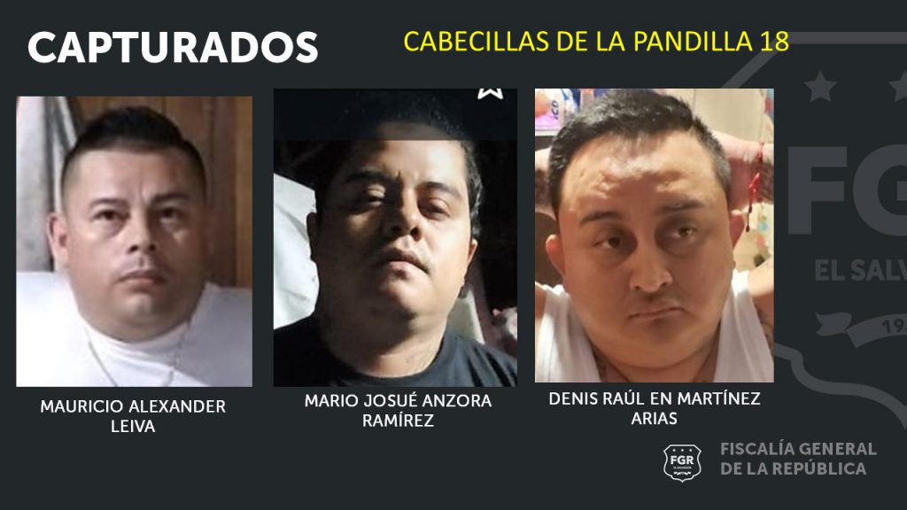Los cabecillas de la pandilla 18 revolucionarios capturados fueron identificados como: Denis Raúl en Martínez Arias, alias Chimbolo; Mario Josué Anzora Ramírez, alias Soso, y Mauricio Alexander Leiva, alias Tun Tun o pipa; a quienes junto al resto de pandilleros detenidos se les acusará de los delitos de Agrupaciones Ilícitas, Homicidio, Proposición para el delito de homicidio y Extorsión.