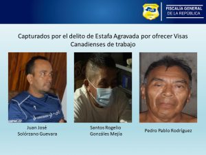 “A muchas personas las reunían y les hacían creer que existía un programa para otorgar visas canadienses para salvadoreños. Que se dedicarían al trabajo en la agricultura y que dicho programa estaba respaldado por una falsa empresa. Fue así como estafaron a 53 personas”, explicó uno de los fiscales.