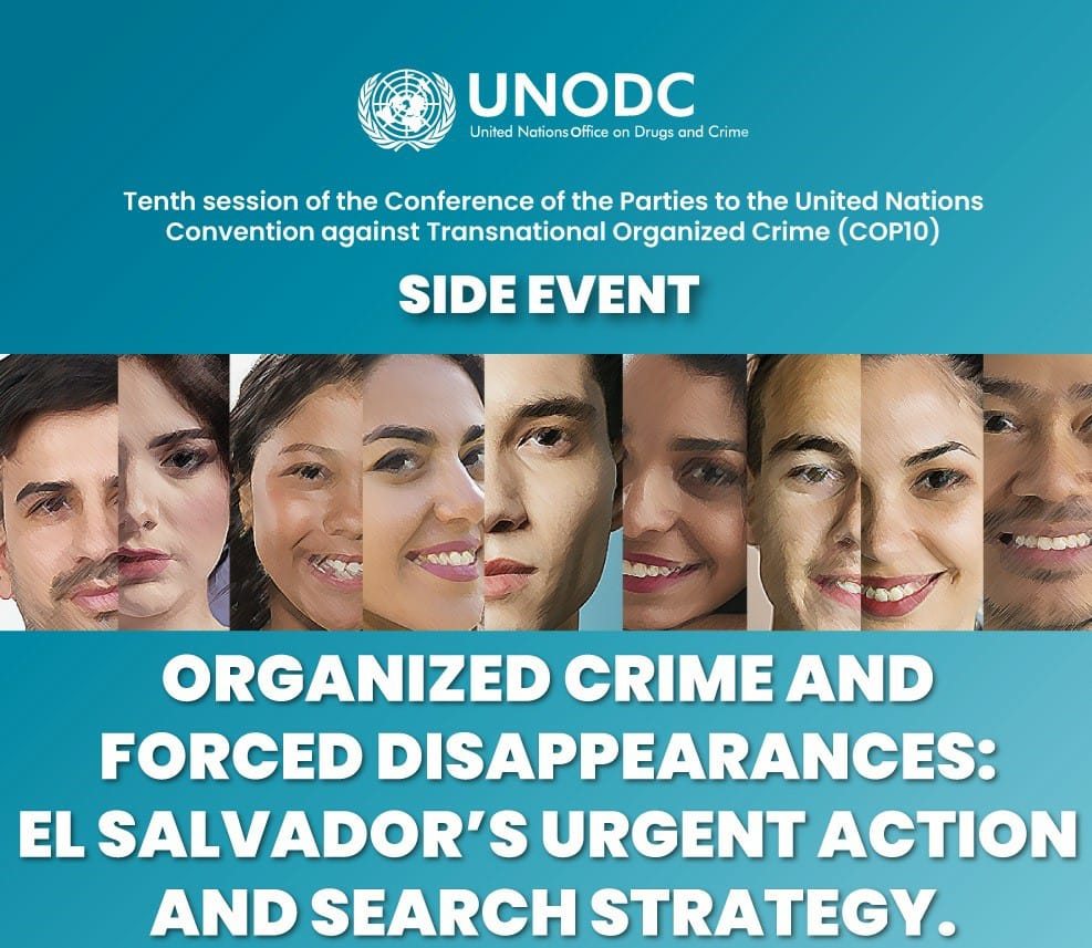 El 14 de octubre de 2020 se realizó el evento paralelo denominado “Crimen Organizado y Desaparición de Personas: Protocolo de Acción Urgente y Estrategia de Búsqueda de El Salvador”, en el marco del décimo periodo de sesiones de la Conferencia de las Partes en la Convención de las Naciones Unidas contra la Delincuencia Organizada Transnacional (COP10).