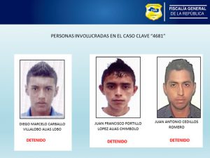 Los sujetos fueron individualizados en el transcurso de la investigación, para los que se giró    orden de captura este día logrando hasta el momento hacer efectivas la detención de Diego Marcelo Carballo Villalobos, Juan Francisco Portillo López y Juan Antonio Cedillos Romero; quedando pendiente uno más de los pandilleros identificados.