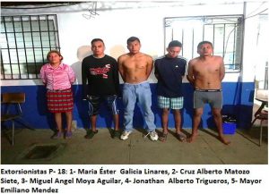 Otro de los casos que se logra resolver es el de Extorsión, para lo cual se ordenó la captura para 11 sujetos pandilleros de la 18 sureños, que operan en los municipios de Atiquizaya, Turín y El Refugio del departamento de Ahuachapán; quienes exigían la cantidad $ 3,000 mensual a una empresa de servicio, desde agosto 2017 a la fecha. Durante la investigación se hicieron entregas bajo cobertura policial donde se logró identificar a los imputados al momento de la entrega.