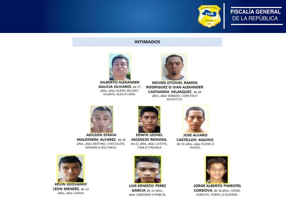 Entre los intimados en penales destaca Moises Otoniel Martínez Rodríguez o Iván Alexander Castaneda Vásquez, Gilberto Alexander Galicia Olivares; a quienes se les imputan los delitos de Actos Preparatorios, Proposición, Conspiración y Asociaciones delictivas de Tráfico Ilícito, Tráfico Ilícito, más de 12 casos de Extorsión Agravada, más de 12 casos de Proposición y Conspiración de Homicidio, Homicidio Agravado y Organizaciones Terroristas.
