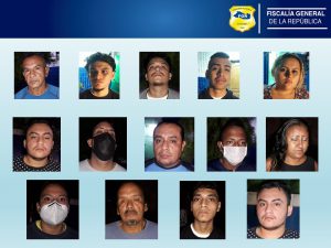 Los detenidos al momento son Pablo Iván Mercado Aguilar, Gustavo Ernesto Marín Portillo, Alirio de Jesús Rojas Bonilla, Oswaldo Adelmo López Palacios, Bryan Alexander López Peña, William Adonay Vázquez Velásquez, Milton Edwin Hernández Ramos, José Moisés Reyes Lovos, Daniel Alexander Regalado Hernández, Patricia Guadalupe Monterrosa Martínez, Karina Yamileth Umanzor de Portillo, Katherine Daniela Caminos Iraheta, Edwin Geovanni Mejía Meléndez y Cristian Javier Rivera Renderos.