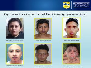 Los imputados fueron identificados como: Tatiana Raquel Hernández Guerra, Bayron Desaiyi Cuéllar Girón, Henry Omar Armero Grande, José Rodrigo Martínez, Juan José Galdámez Valladares y Jonathan David Barrientos Ramírez, todos miembros de la Pandilla 18 Sureños.