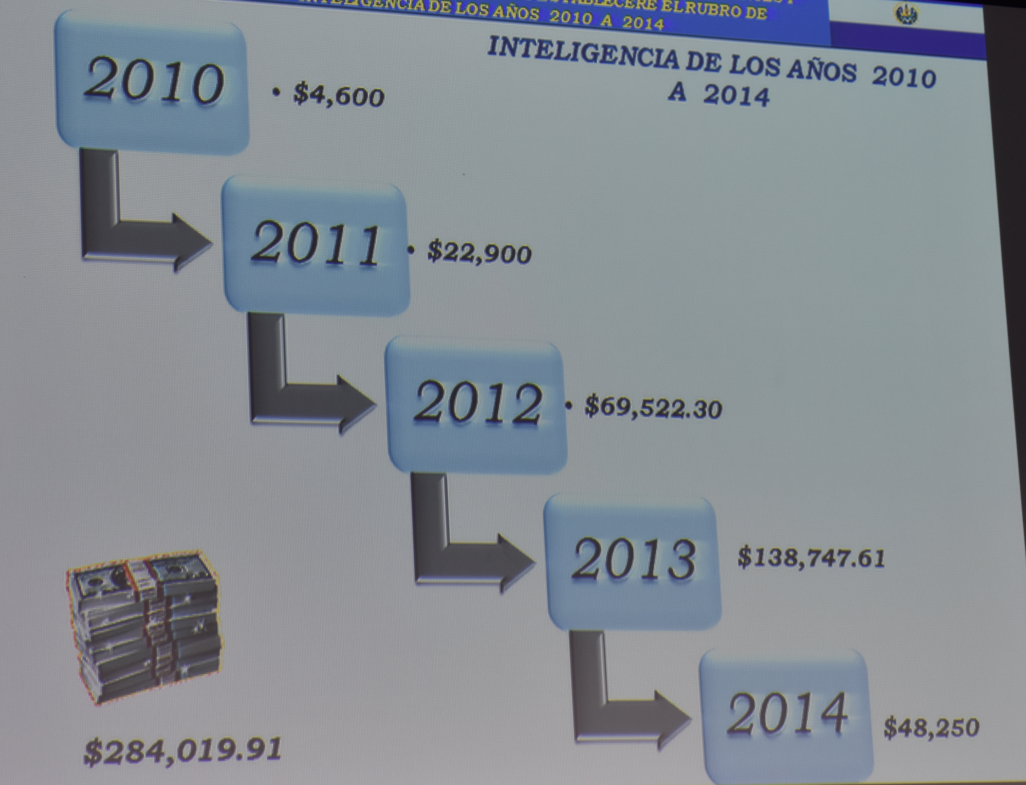 De igual manera, entre los años 2010 al 2014 los gastos por Pago de Servicios de Inteligencia fueron aumentando tal como se demuestra en el gráfico anexado por año.