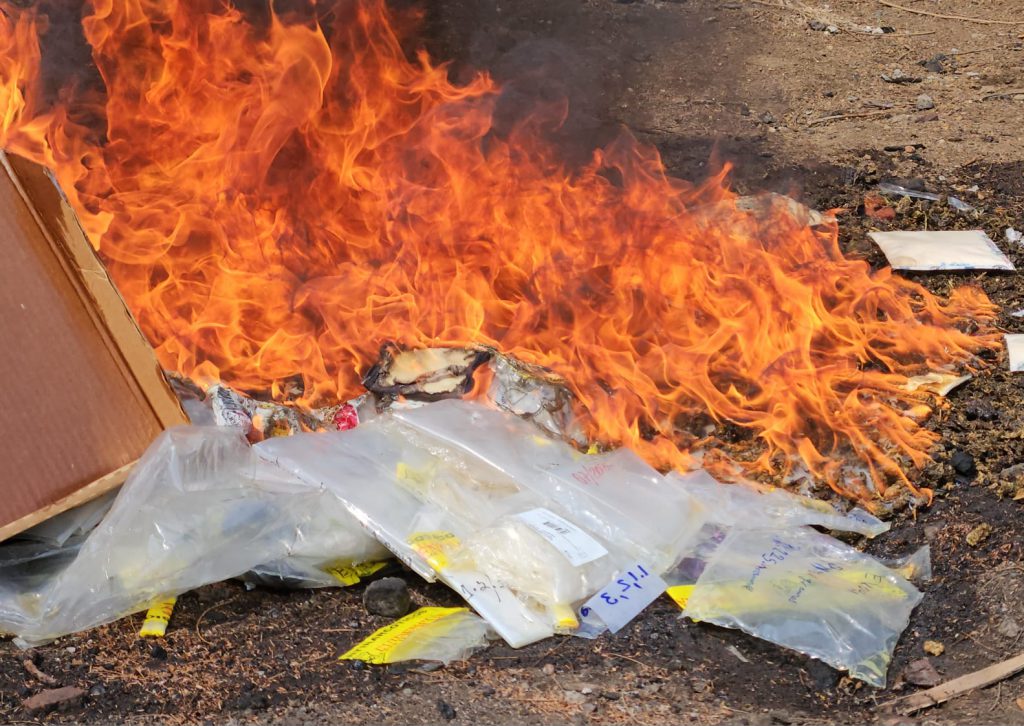Entre la droga incinerada están 473.8 gramos de cocaína que estaban ocultos en tres pescados secos.