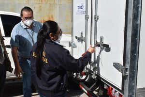 “Hemos verificado que, al Tribunal Supremo Electoral, se le entregaron 90 cajas, con un peso de 900 kilos y cada una contiene 100 frascos, los cuales suman en total 9,000 de pequeños recipientes que posteriormente serán sometidos al correspondiente análisis y pruebas de efectividad”, explicó la Fiscal campos.