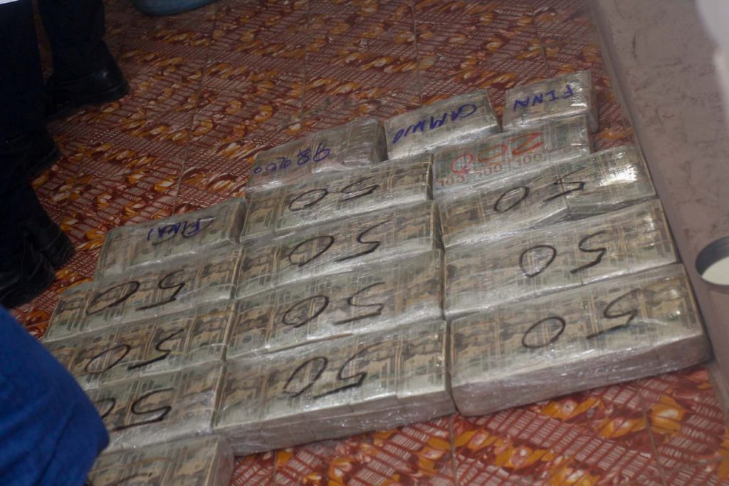 El Fiscal General detalló que, “Se encontró una fuerte cantidad de dinero, que está distribuida en 22 paquetes. Cada uno de tiene una rotulación, algunos con el número 50 y otros con el número 98”.