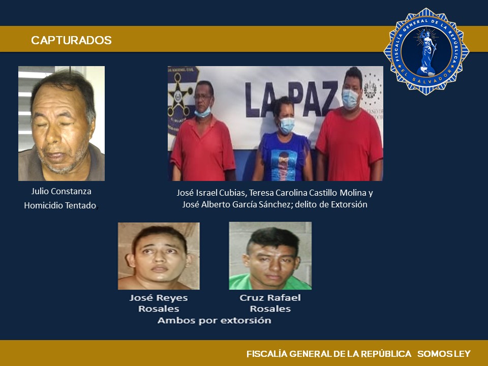 También se procedió a la detención de José Alberto García Sánchez, José Israel Cubias y Teresa Carolina Castillo Molina, por el delito de extorsión en perjuicio de víctima protegida con clave 14-Z-21.