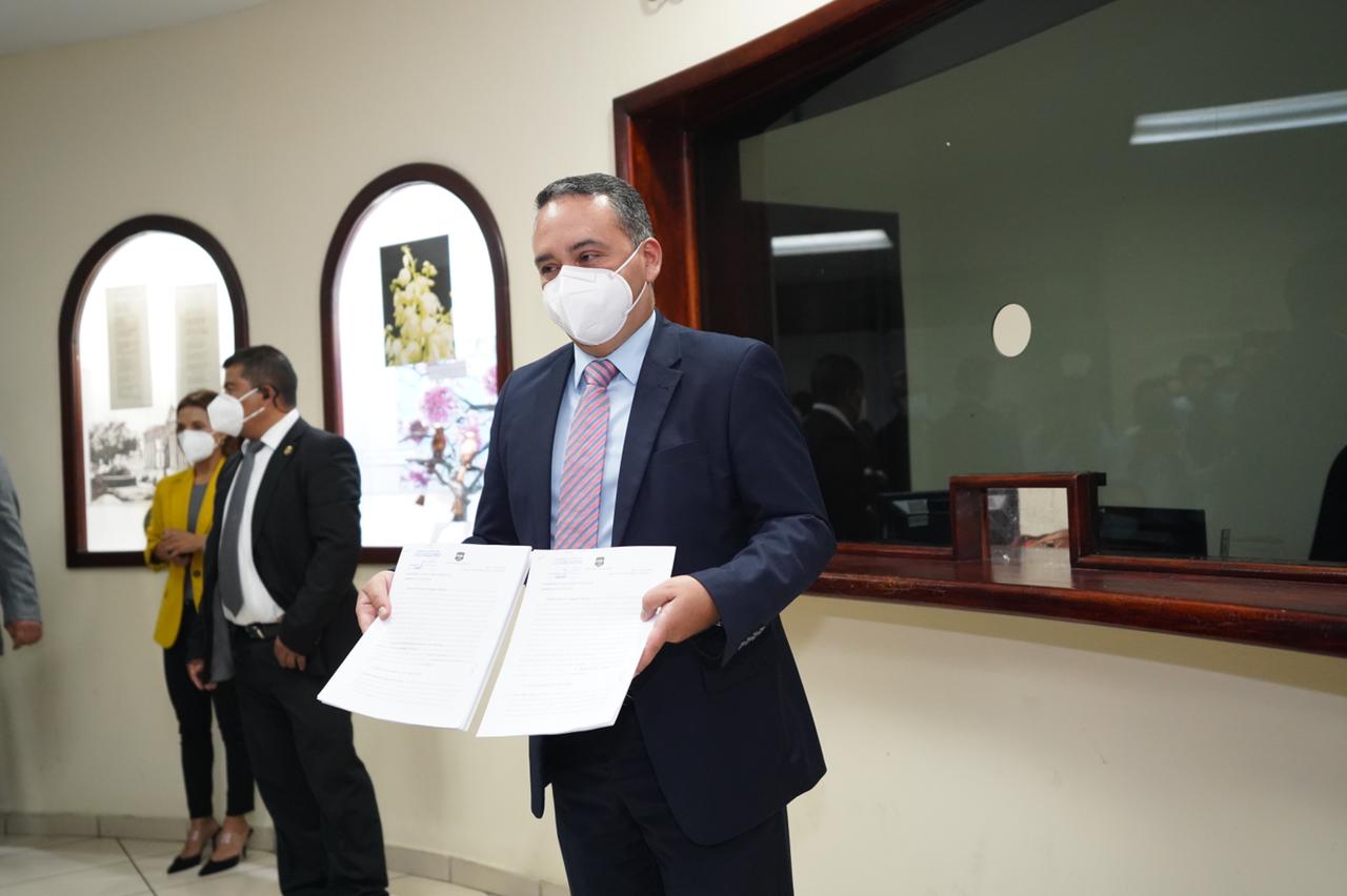 San Salvador. El Fiscal General de la República, Rodolfo Delgado llegó hasta la recepción de correspondencia de la Asamblea Legislativa para presentar dos solicitudes de antejuicio y petición de desafuero contra los diputados José Ilofio García Torres y Gerardo Balmore Aguilar Soriano por el delito de Cohecho Impropio, en perjuicio de la administración pública.