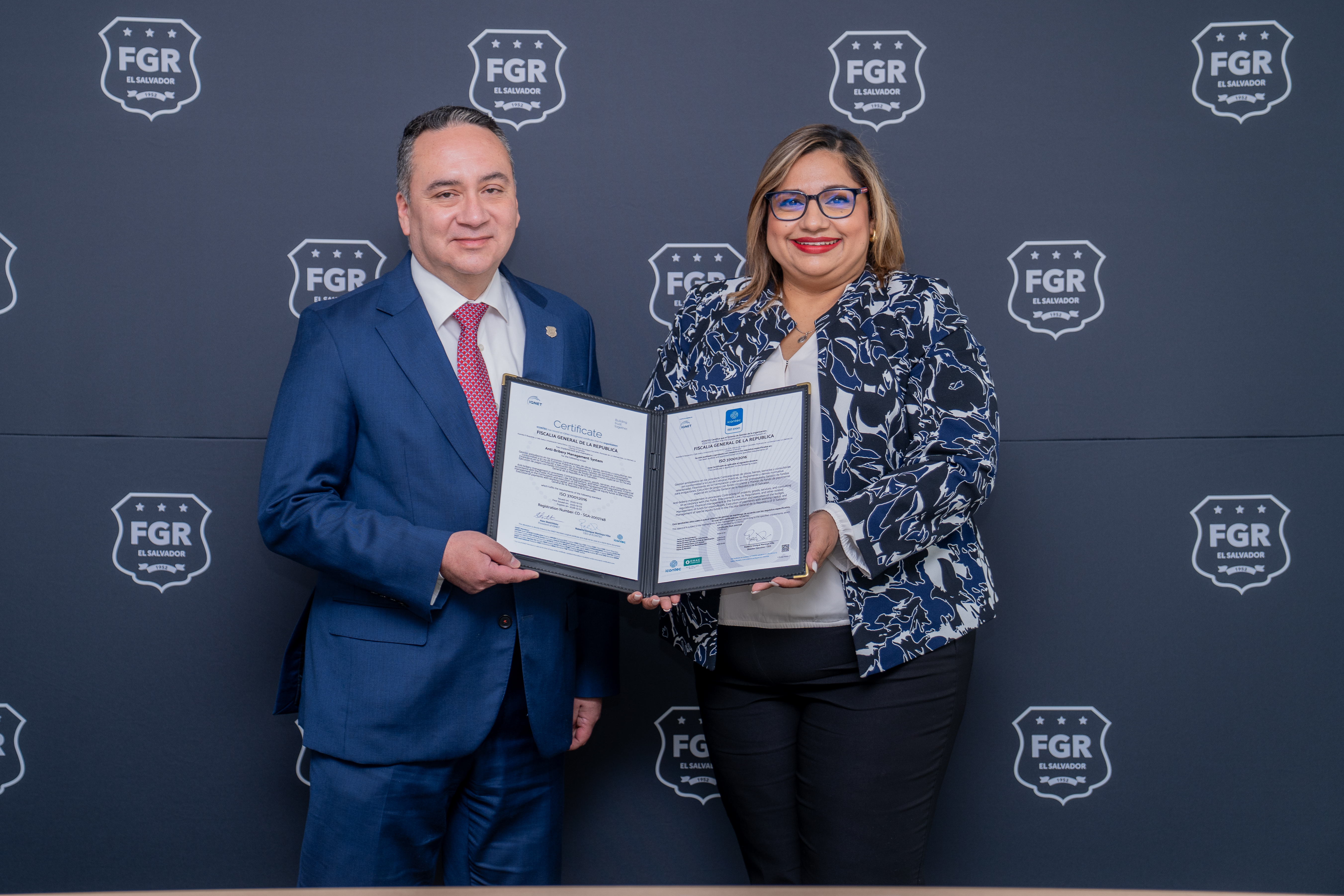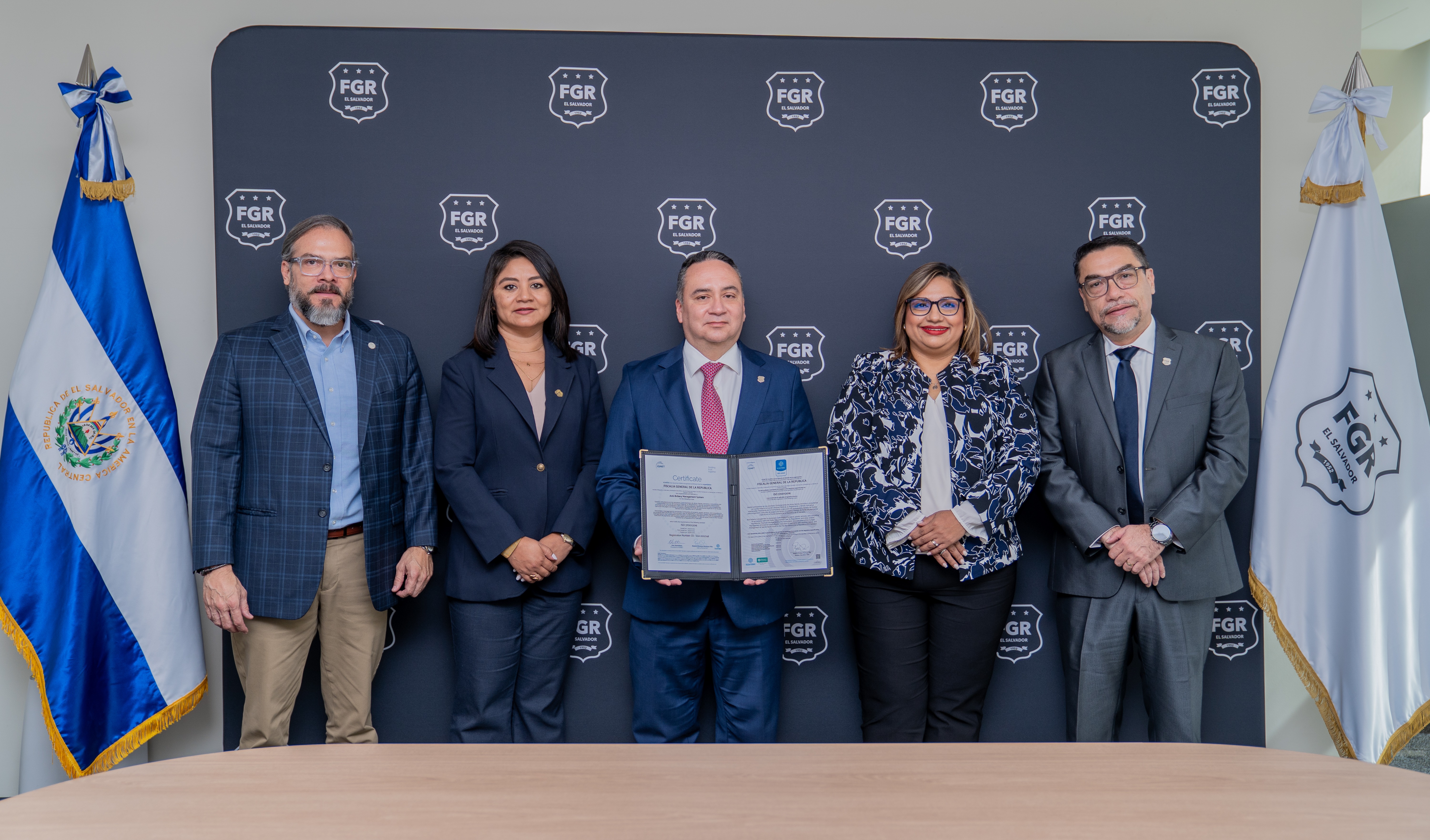 Antiguo Cuscatlán, La Libertad Este. Tras meses de preparación para prevenir, detectar y enfrentar el soborno, el Fiscal General de la República, Rodolfo Delgado, recibió el certificado de cumplimiento del Sistema de Gestión Antisoborno bajo la norma ISO 37001:2016. La acreditación fue recibida del ICONTEC de Centro América S.A de C.V, ente certificador internacional.