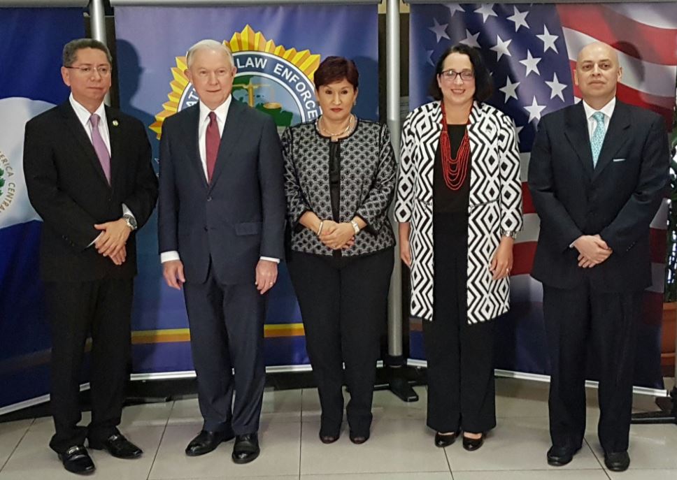Sessions realizó una visita de dos días en la que tuvo oportunidad de reunirse con el Presidente de la República, Salvador Sánchez Cerén y con diferentes autoridades de seguridad.
