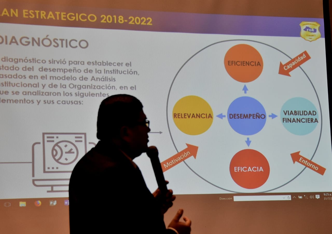 El Fiscal General de la República Lic. Douglas Meléndez presentó esta mañana el Plan Estratégico Institucional 2018-2022, cual contempla los ejes estratégicos de representar, defender y tutelar con efectividad y transparencia los intereses de la sociedad y del estado, conforme a los principios de legalidad, justicia y objetividad.
