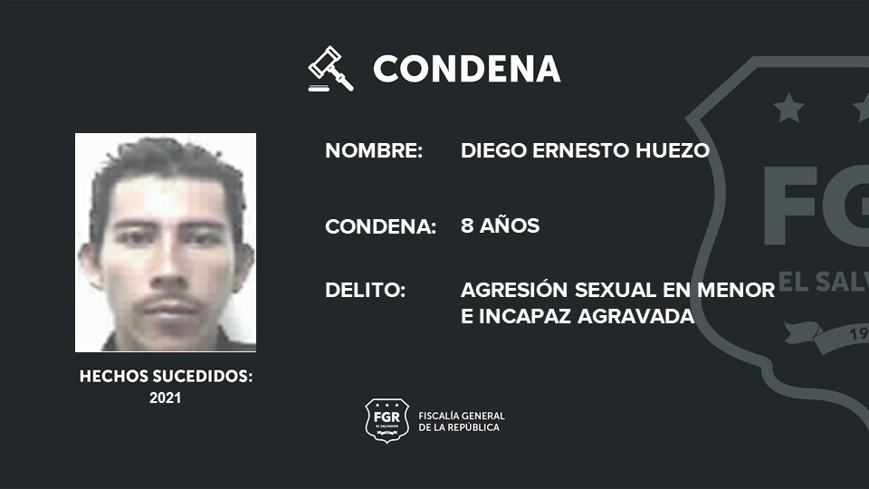 Chalatenango. Por agredir sexualmente a una adolescente de 13 años de edad, la Fiscalía General de la República (FGR) logró que Diego Ernesto Huezo fuera condenado a ocho años de prisión y al pago de mil dólares en concepto de responsabilidad civil. Las agresiones fueron cometidas en el año 2021, en el caserío Metayate, del municipio de La Reina, en Chalatenango.