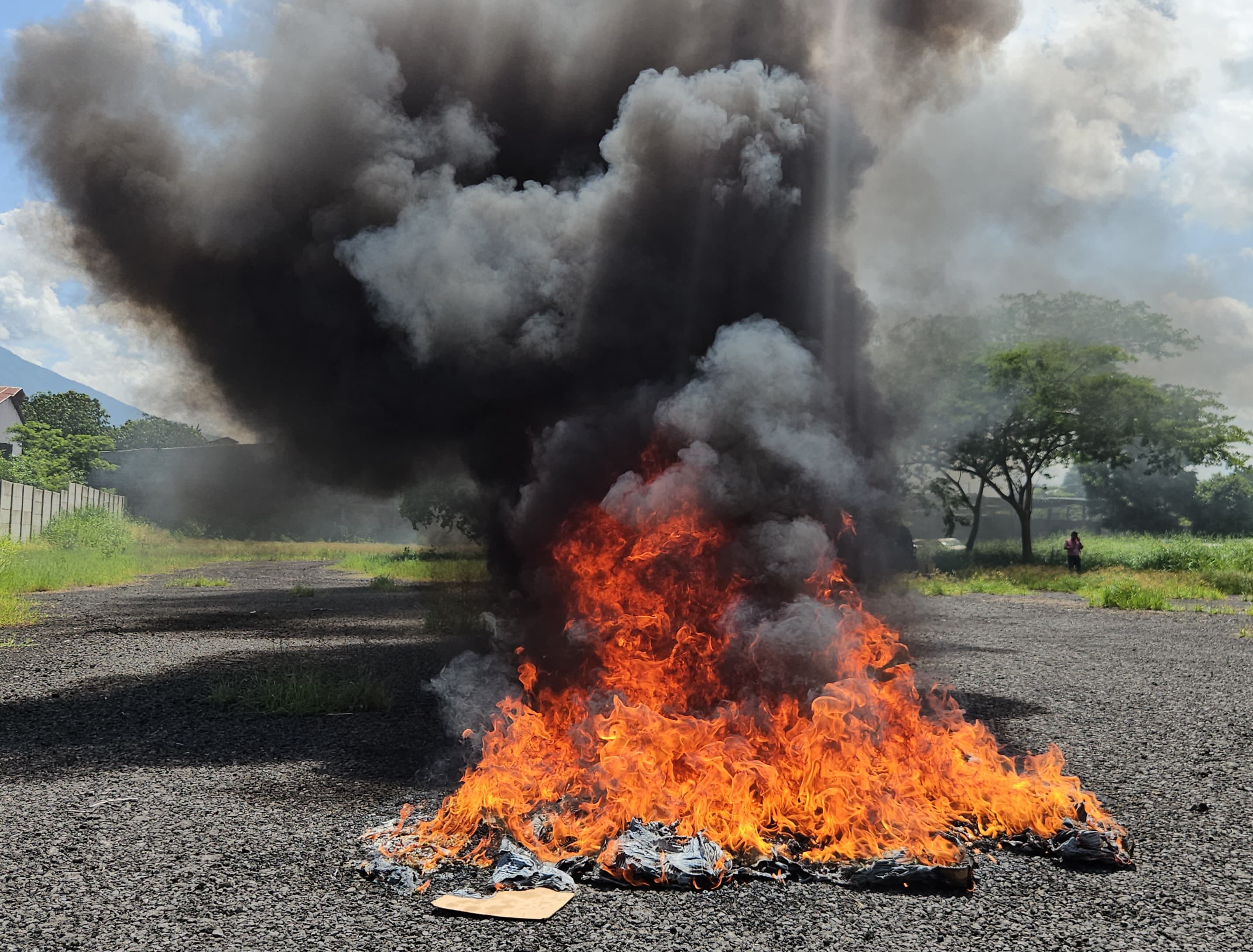 Entre la droga incinerada están 1, 008. 5 gramos que fueron incautados el 18 de abril de 2002, en la 30 avenida sur de la colonia Ciudad Real, de San Miguel. El ilícito tenía un valor económico de $25,353 dólares.