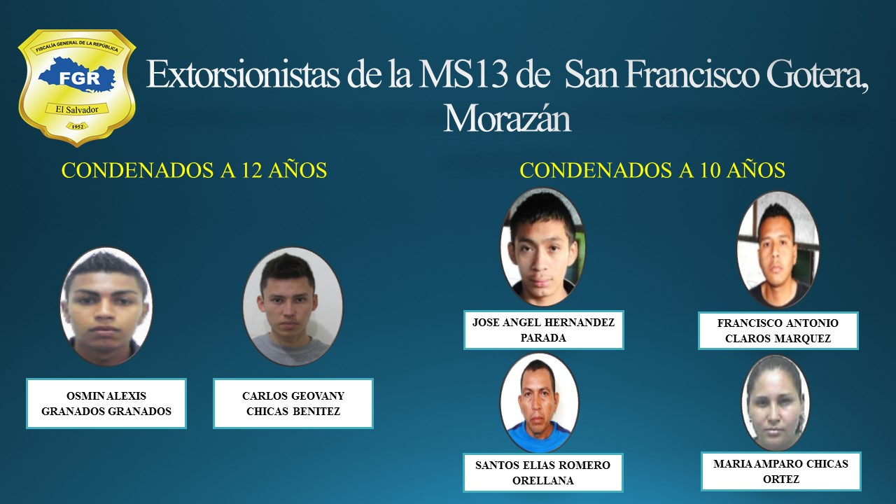 Condenan a 10 y 12 años de cárcel a seis extorsionistas de la MS-13 de Morazán