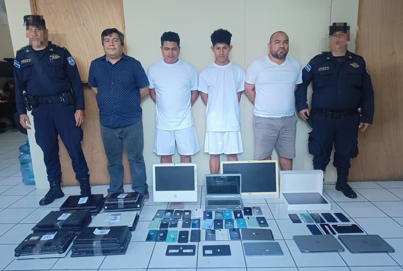 A los detenidos se les acusa del delito de receptación y, además, se han decomisado 31 computadoras (incluyendo computadoras entregadas por el gobierno que no tienen un respaldo legal de adquisición), 105 teléfonos, 6 tablets y 5 documentación bancaria (tarjetas de débito, libretas de ahorro y documentos)