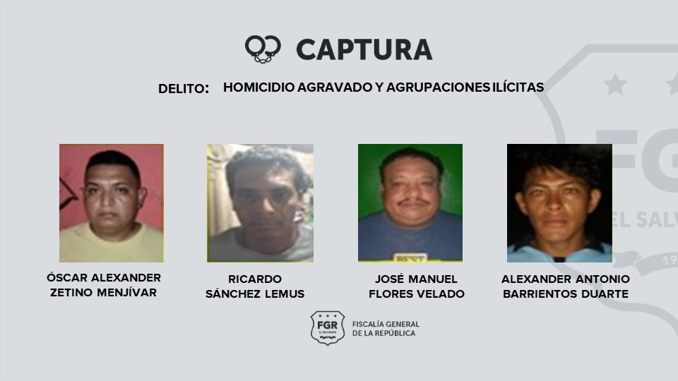 Dentro de las capturados están varios homeboys como Luis Humberto Martínez Hernández, Rocael Francisco Arévalo Valencia, Guillermo Otoniel de León Vásquez, Josué Ronaldo Juárez Javier, Óscar Alexander Zetino Menjívar, Ricardo Sánchez Lemus José Manuel Flores Velado y Alexander Antonio Barrientos Duarte.