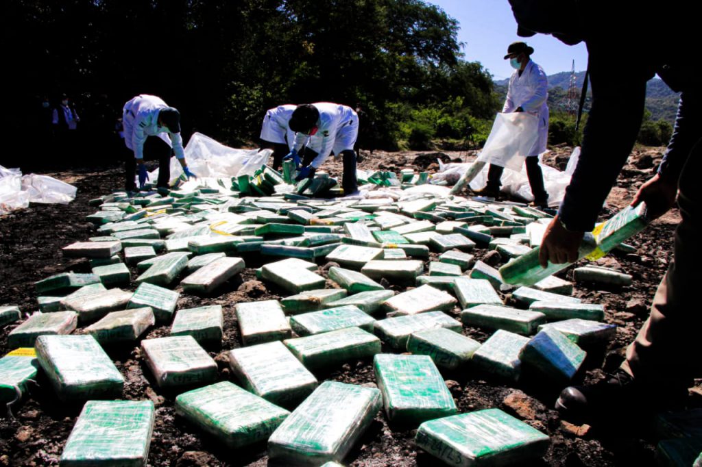 Ilopango, San Salvador. Con la participación de autoridades policiales y judiciales, la Fiscalía Especializada Antinarcotráfico dirigió hoy, la destrucción judicial de 500 kilos de cocaína. Se trató de otro procedimiento de intervención y captura realizado por autoridades en la costa salvadoreña.