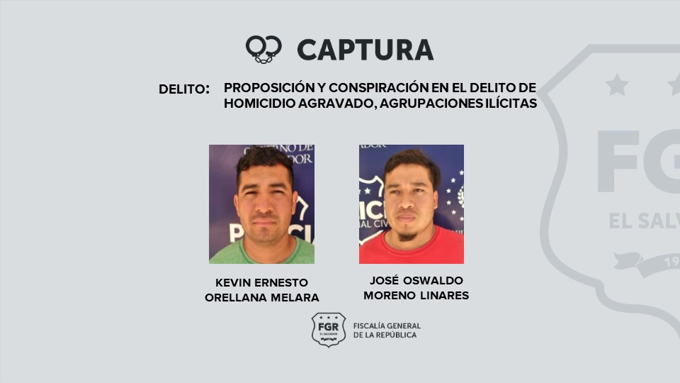 Durante el procedimiento se logró capturar a Kevin Ernesto Orellana Melara, palabrero del Barrio 18 y José Oswaldo Moreno, homeboy de la misma pandilla. El resto de imputados ya se encuentran guardando prisión en distintos centros penales del país y serán notificados de los nuevos delitos que se les atribuyen.