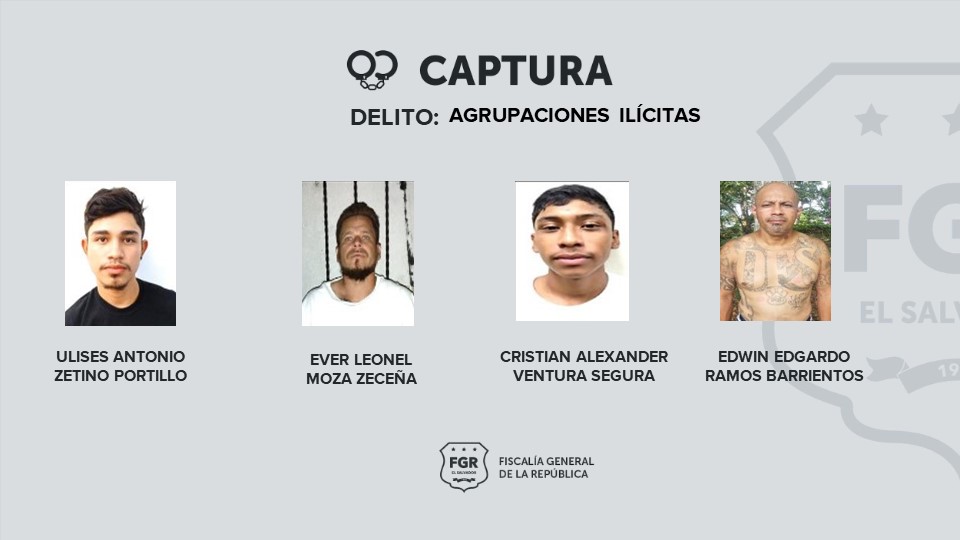 Entre los detenidos figuran pandilleros de la MS, de la mara Máquina y Barrio 18: Yency Estefany Morán Ortiz, Ricardo Adonis Ortiz, Marvin Alexander García Morán, Ulises Antonio Zetino Portillo, Ever Leonel Moza Zeceña quien es homeboy, Cristian Alexander Ventura Luna y Edwin Edgardo Ramos Barrientos.