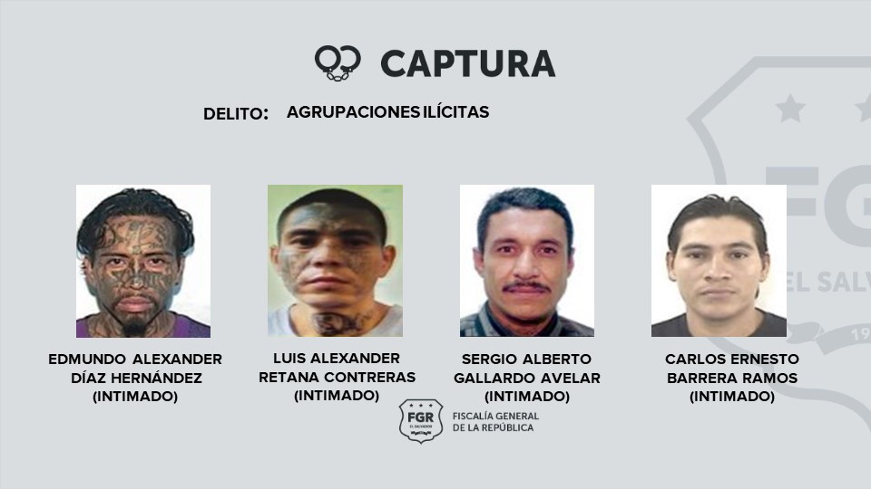 Los otros detenidos perfilados como colaboradores del grupo terrorista, son: José Arturo Ramírez González, alias “el sope”; José Vladimir Dorodea Ortiz, alias «black lion»; Mauricio Roberto Alarcón, alias “el negro»; Juan Carlos Rivera Pérez; Óscar Armando Martínez Zetino; Juan Francisco Mendoza Zuniga; Melvin Adalberto Pérez Ortiz; Yuliza Beatriz Cruz Coto; Mirtala Yesenia Sánchez Ramírez; Ada Maritza Martínez; Rosalinda Margarita Rivera Escalante; Rosa María Saravia Ramírez; Elvia Nathaly Villanueva e Irma de Jesús Díaz Colocho.