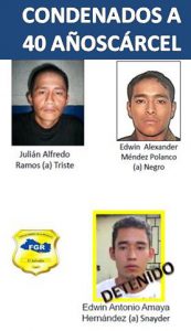 La Libertad. Tres integrantes de la “Mara Salvatrucha”, deberán cumplir sentencia condenatoria de 40 años de cárcel, esto después que fueron declarados culpables por el crimen de un agente de la Policía Nacional Civil (PNC), a quien también le prendieron fuego. Este hecho fue cometido en el año 2015, en Santa Tecla.
