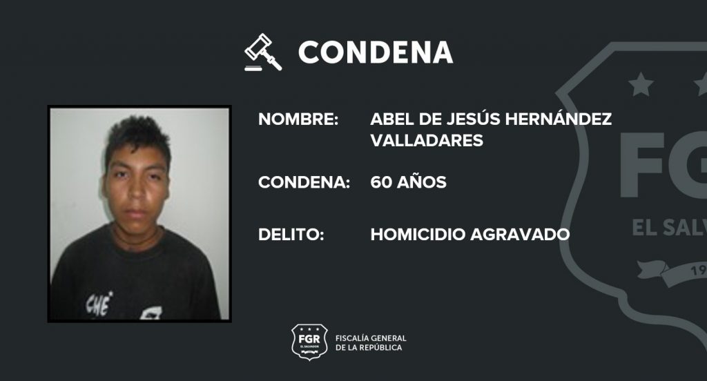 San Vicente. La Fiscalía logró la imposición de una condena de cárcel ejemplar para un miembro de la Mara Salvatrucha que asesinó a dos personas en San Vicente, por no querer ser miembros del grupo terrorista al que pertenece; el crimen no quedó impune gracias a las eficientes diligencias realizadas por la Fiscalía y fue posible que Abel de Jesús Hernández Valladares permanezca en la cárcel, los próximos 60 años.