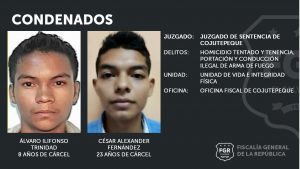 La resolución del Tribunal establece una pena carcelaria de 23 años Cesar Alexander González Hernández, 20 por el homicidio agravado tentado y tres por la portación ilegal de arma de fuego. En tanto para el otro imputado identificado como Álvaro Elifonso Trinidad Escobar la pena fue de 8 años de prisión 4 años por el delito de Tenencia, Portación o Conducción, Ilegal o Irresponsable de Arma de Fuego y 4 años por el delito de Recepción.