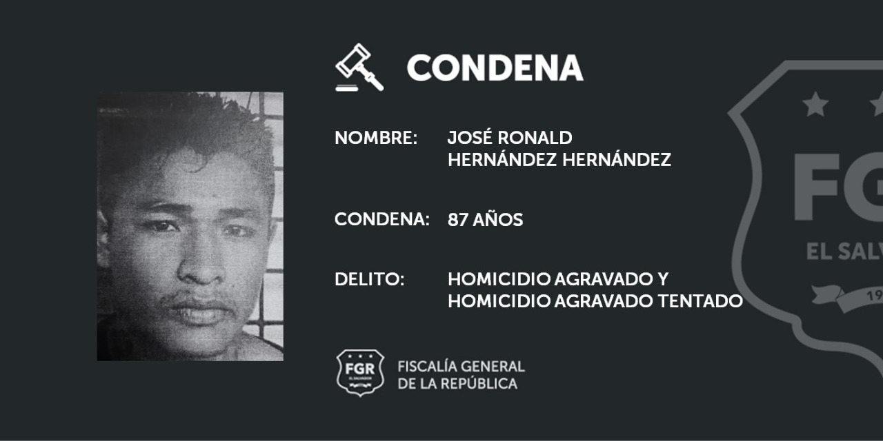 Además, José Ronald Hernández Hernández, 87 años de prisión; Manuel de Jesús Portillo, 75 años de cárcel, Salomón Eliazar Moreno, condenado a 50 años de prisión. El resto obtuvo penas de 25, 12 y 10 años de prisión.