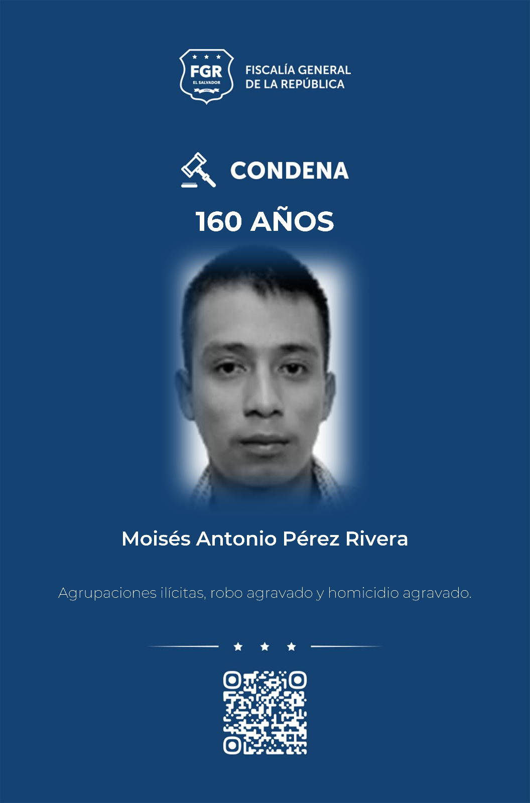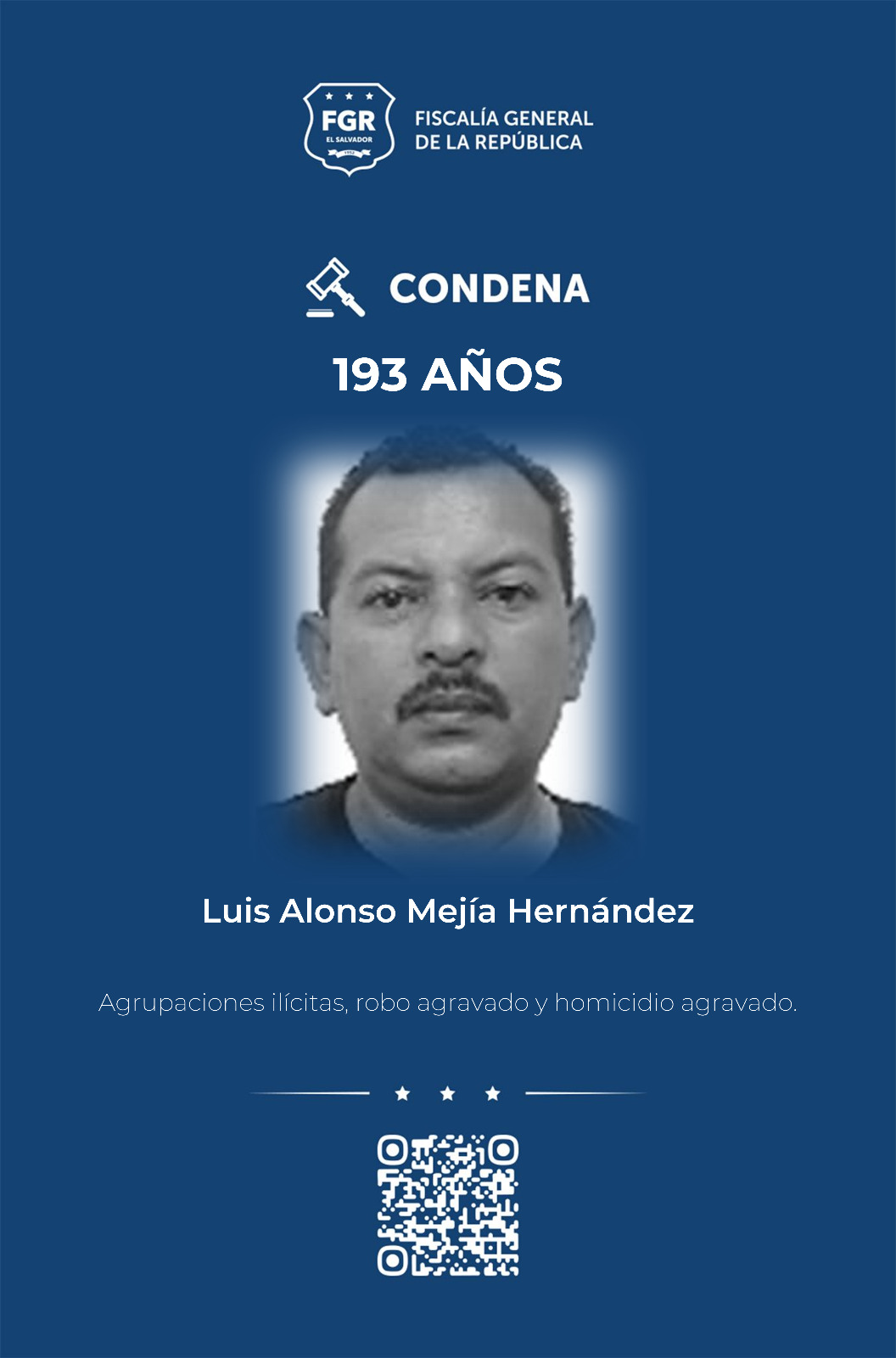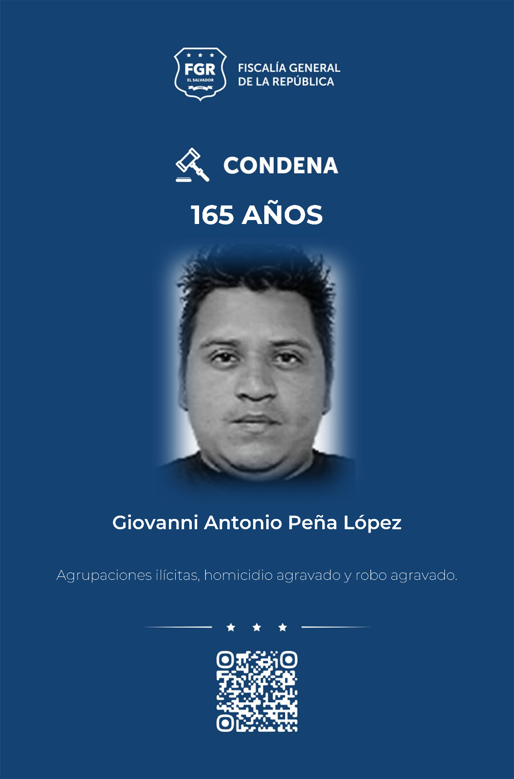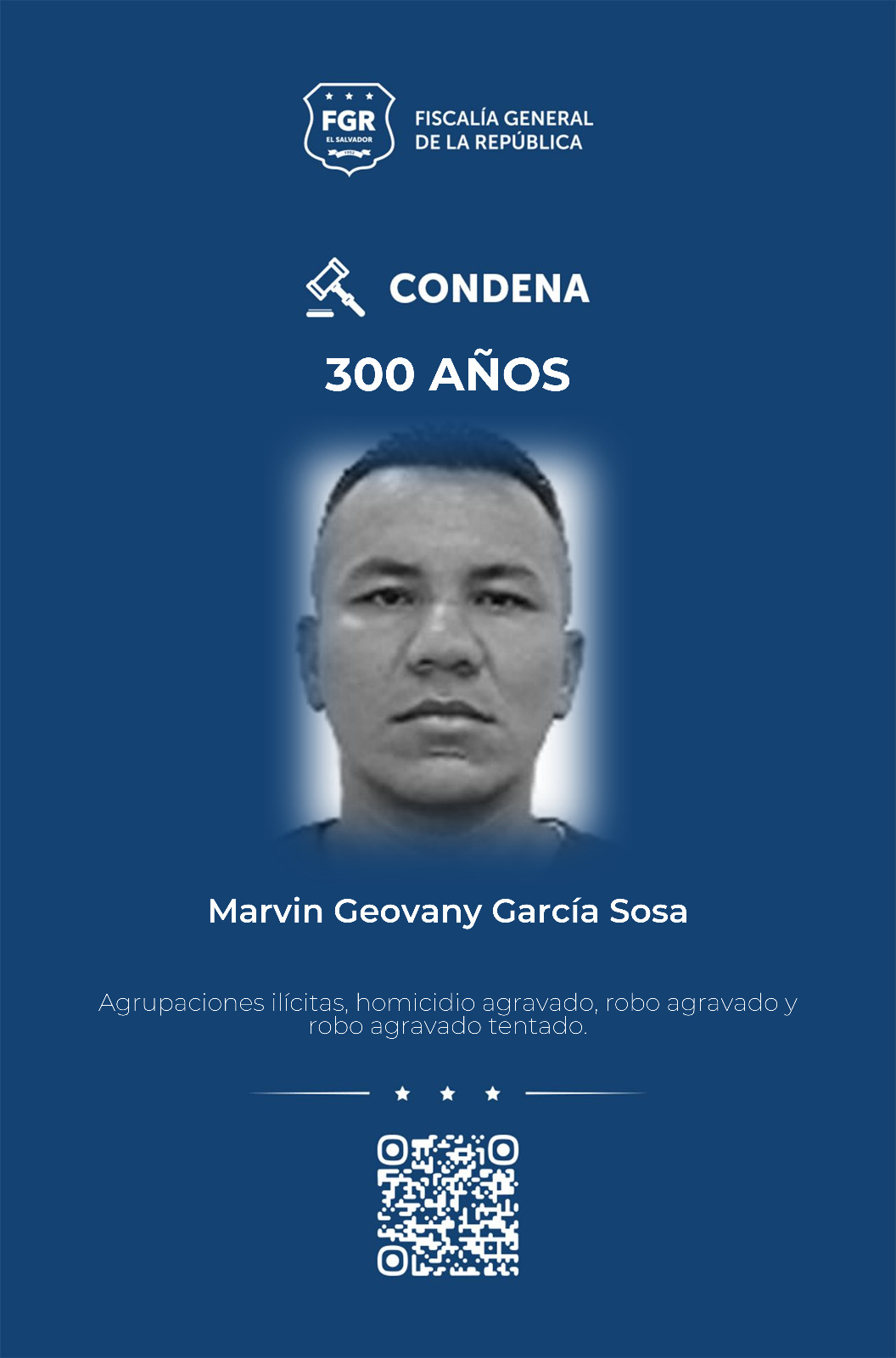 La sentencia más alta fue impuesta a Marvin Geovany García Sosa, a quien se condenó a 300 años de prisión, de los cuales 14 son por agrupaciones ilícitas, 100 años por dos casos de homicidio agravado, 180 por 15 casos de robo agravado y seis años por robo agravado tentado, indicó el reporte fiscal.