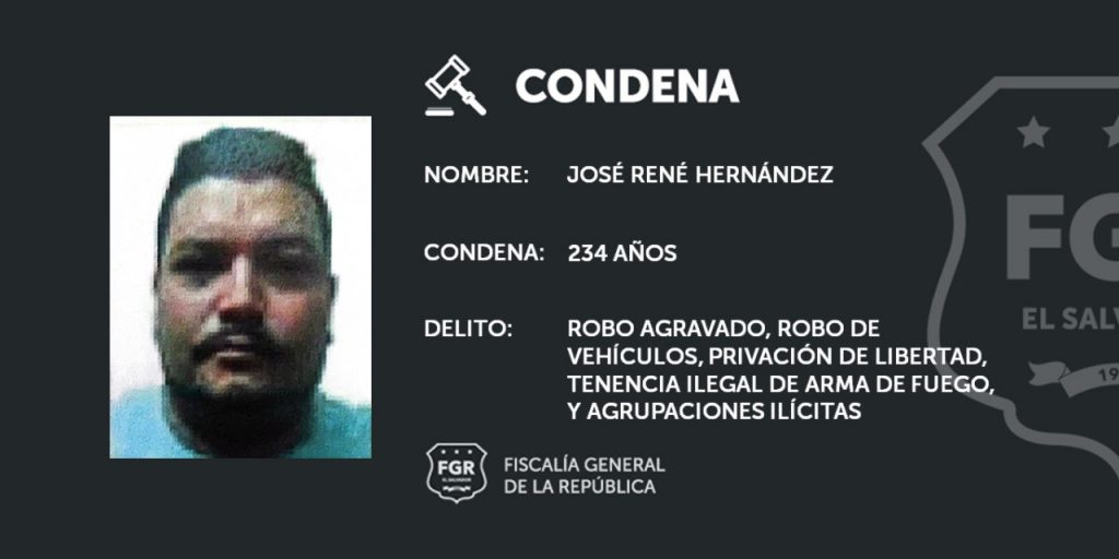 A otros miembros de la estructura se les impusieron penas significativas por su participación delictiva: Edwin Méndez Deras, 121 años de cárcel; Giovanni Edgardo Escobar, 111 años de prisión; Herbert Alexander Barahona Marroquín, 101 de cárcel; José Edwin Alvarenga, 91 años e Irving Adonis Morales Choto sentenciado a 77 años.