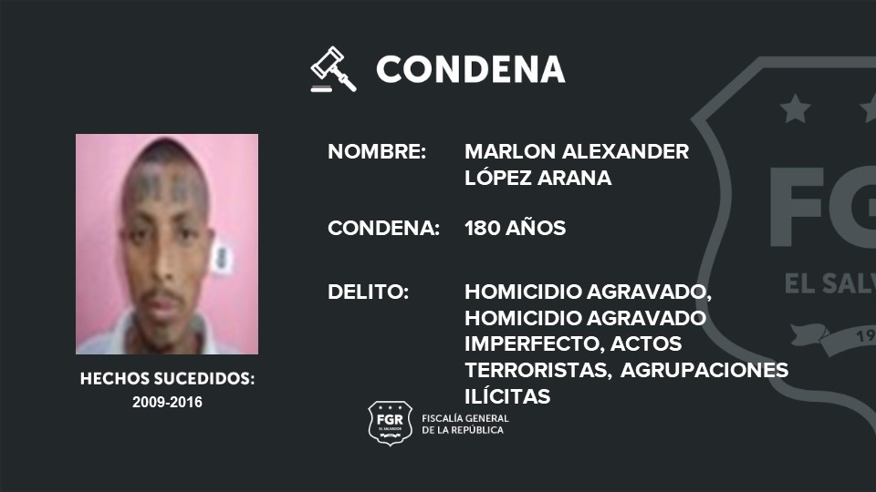Entre los condenados está Marlon Alexander López Arana, alias sayco, quien fue perfilado como corredor de clica, y sentenciado a 180 años de prisión por el delito de homicidio agravado, actos terroristas, homicidio agravado imperfecto y agrupaciones ilícitas. El imputado también está condenado a pagar $1,200.00 dólares en concepto de responsabilidad civil.