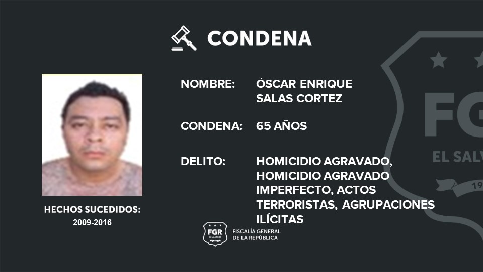 Ulises Antonio Moreno Ramos, alias zorro o flama, pasará los próximos 75 años en la celda de una cárcel prisión; Óscar Enrique Salas Cortez, corredor de programa recibió una pena de 65 años de cárcel y deberá pagar $400.00 dólares de responsabilidad civil.
