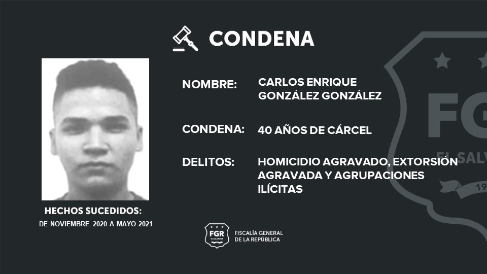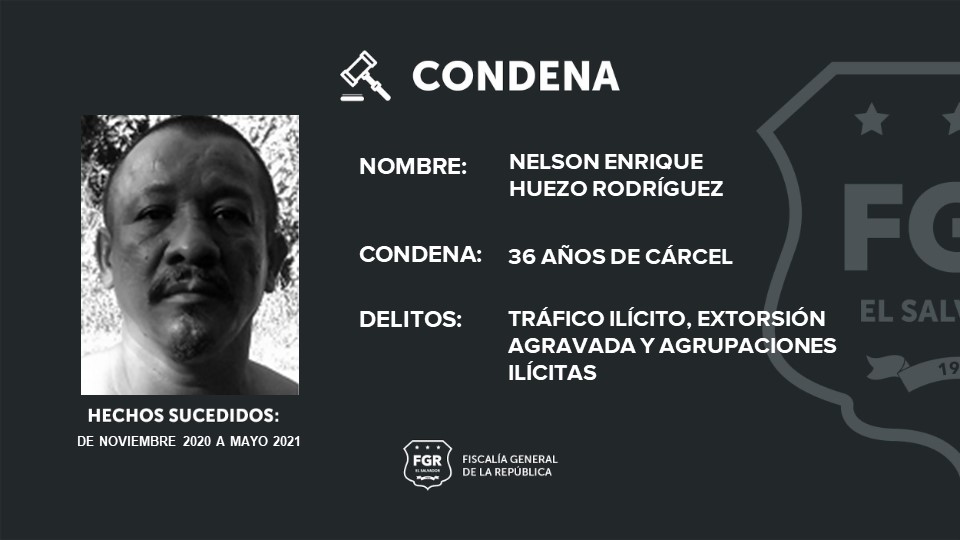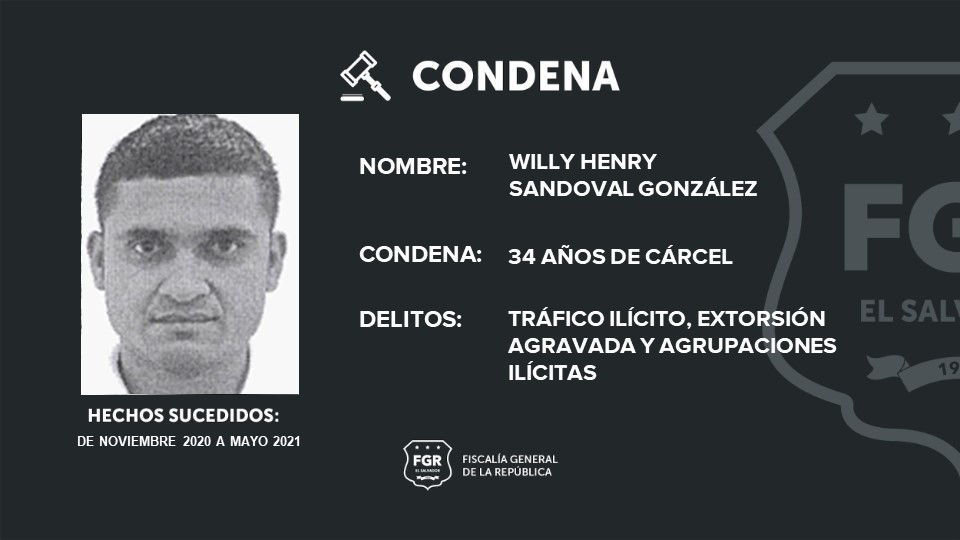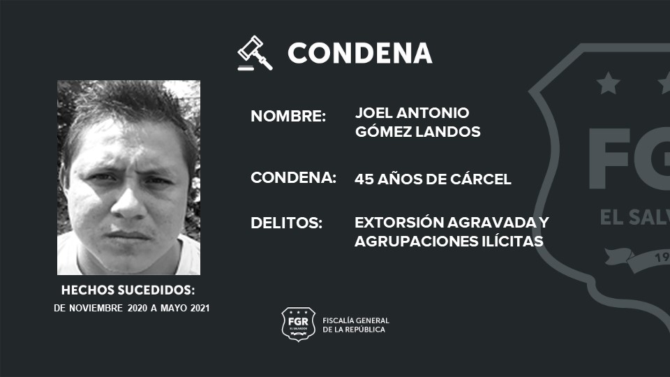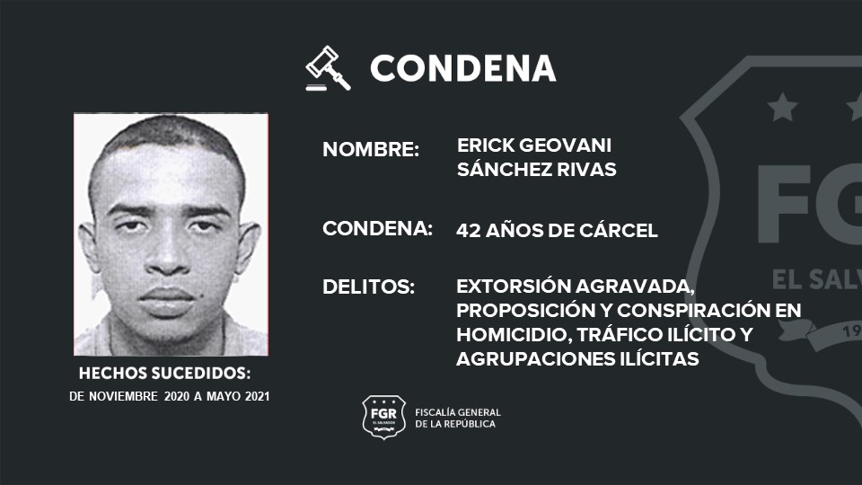 Otros de los condenados son: Joel Antonio Gómez Landos, alias “Joel o Tony” fue condenado a 45 años de prisión; a Erick Geovani Sánchez Rivas, alias “mafioso”, se le impusieron 42 años de cárcel; Carlos Enrique González González, alias “gordo del 6” se le impusieron 40 años; Nelson Enrique Huezo Rodríguez, alias “thunder”, pasará 36 años encarcelado; Willy Henry Sandoval González, alias “kid”, purgará 34 años de encierro; Carlos Antonio Pérez Nieto, alias “lola”, recibió 25 años de cárcel.